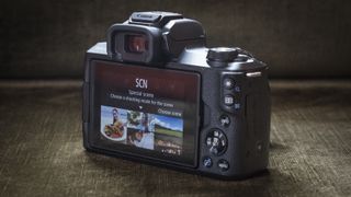 With the chassis constructed from strong polycarbonate, the EOS M50 weighs only a little less than the EOS M5, while the leatherette-effect textured handgrip is nicely proportioned for the camera.