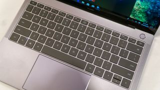 Above the keyboard is the power button, which – like the MateBook X – has a built in fingerprint scanner. This is a great idea, as it means you can turn on the laptop, and sign in to it, with just a single touch, and Huawei told us that from cold startup to logging in to Windows 10, it takes just 7.8 seconds – and just 6.6 seconds from hibernation.