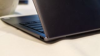 On either side of the keyboard are two top-firing, stereo speakers (for a total of four) that support Dolby Atmos, and it shows. A demonstration of the audio performance at 80% volume was loud and impressively nuanced. We could actually hear the sound travel across the four distinct audio channels.